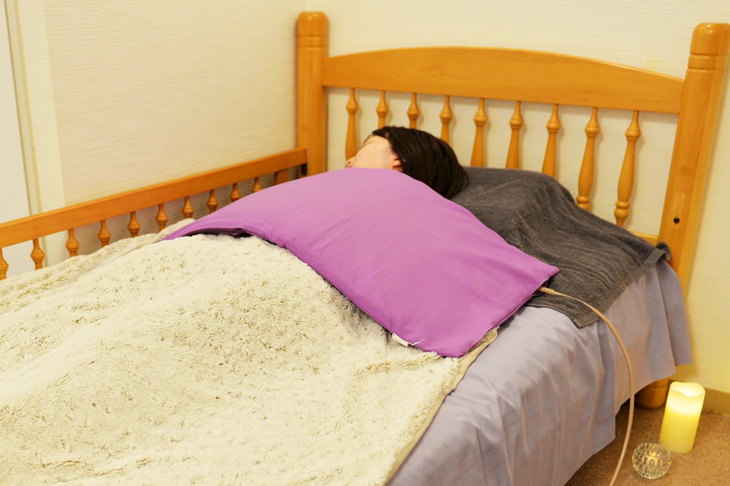 バイオマットは70度の温かさで身体を包み込むように敷かれ、温かさによって体内で自然治癒力を高めるヒートショックプロテインが分泌されるという特徴があります。材料には人の波動と最も近いと言われるアメジストが使われています。1回受けるだけでもヒートショックプロテインが3日間分泌され、4日に一度受けていただくとさらに効果を実感していただけます。より健康な身体になりたい方やリラックス効果を得たい方は一度お試しください。